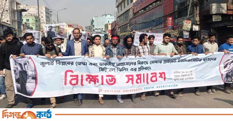 জুলাই বিপ্লবে সক্রিয় যোদ্ধা ও ভারতীয় আধিপত্যবাদের বিরুদ্ধে সোচ্চার বেসরকারি বিশ্ববিদ্যালয়ে শিক্ষার্থীদের সিরিয়াল কিলিং এর প্রতিবাদে ও এর বিচারের দাবিতে বিক্ষোভ সমাবেশ করেছে প্রাইভেট ইউনিভার্সিটি ইয়ুথ অ্যাসোসিয়েশন।