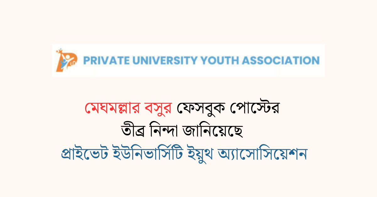 প্রাইভেট ইউনিভার্সিটি ইয়ুথ অ্যাসোসিয়েশন (PUYA) সম্প্রতি ঢাকা বিশ্ববিদ্যালয় শাখা ছাত্র ইউনিয়নের সভাপতি মেঘমল্লার বসু একটি ফেসবুক পোস্টে “রেড টেরর” ও পরবর্তী আরো একটি পোস্টে সন্ত্রাসী সংগঠন “সর্বহারা” পুনর্গঠনের আহবানকে তীব্র নিন্দা জানায়। পোস্টটির বিষয়বস্তু সহিংসতাকে উস্কে দেয়, গণতান্ত্রিক মূল্যবোধকে ক্ষুণ্ন করে এবং দেশের ছাত্র-জনতার শান্তিপূর্ণ সহাবস্থান ও নিরাপত্তার জন্য সরাসরি হুমকি।