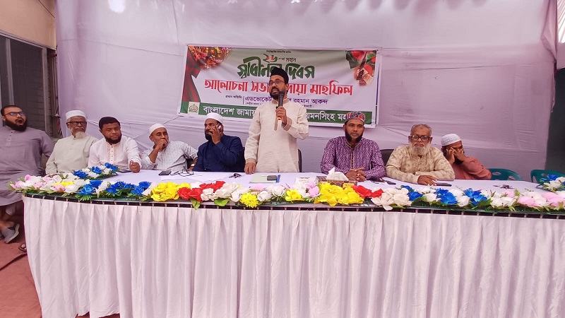 ময়মনসিংহ মহানগরীর মহনগরীর আমীর কামরুল আহসান ইমরুলের সভাপতিত্বে অনুষ্ঠিত সভায় উপস্থিত ছিলেন মহানগরী নায়েবে আমীর আসাদুজ্জামান সোহেল, সেক্রেটারি শহীদুল্লাহ কায়সার, আনোয়ার হোসেন সুজন, খুনিদকার আবু হানিফ, গোলাম মোহসিন খান, ডা. আজিজুর রহমান, ইঞ্জিনিয়ার আব্দুল বারী, ওয়ালীউল্লাহ মোজাহিদ।